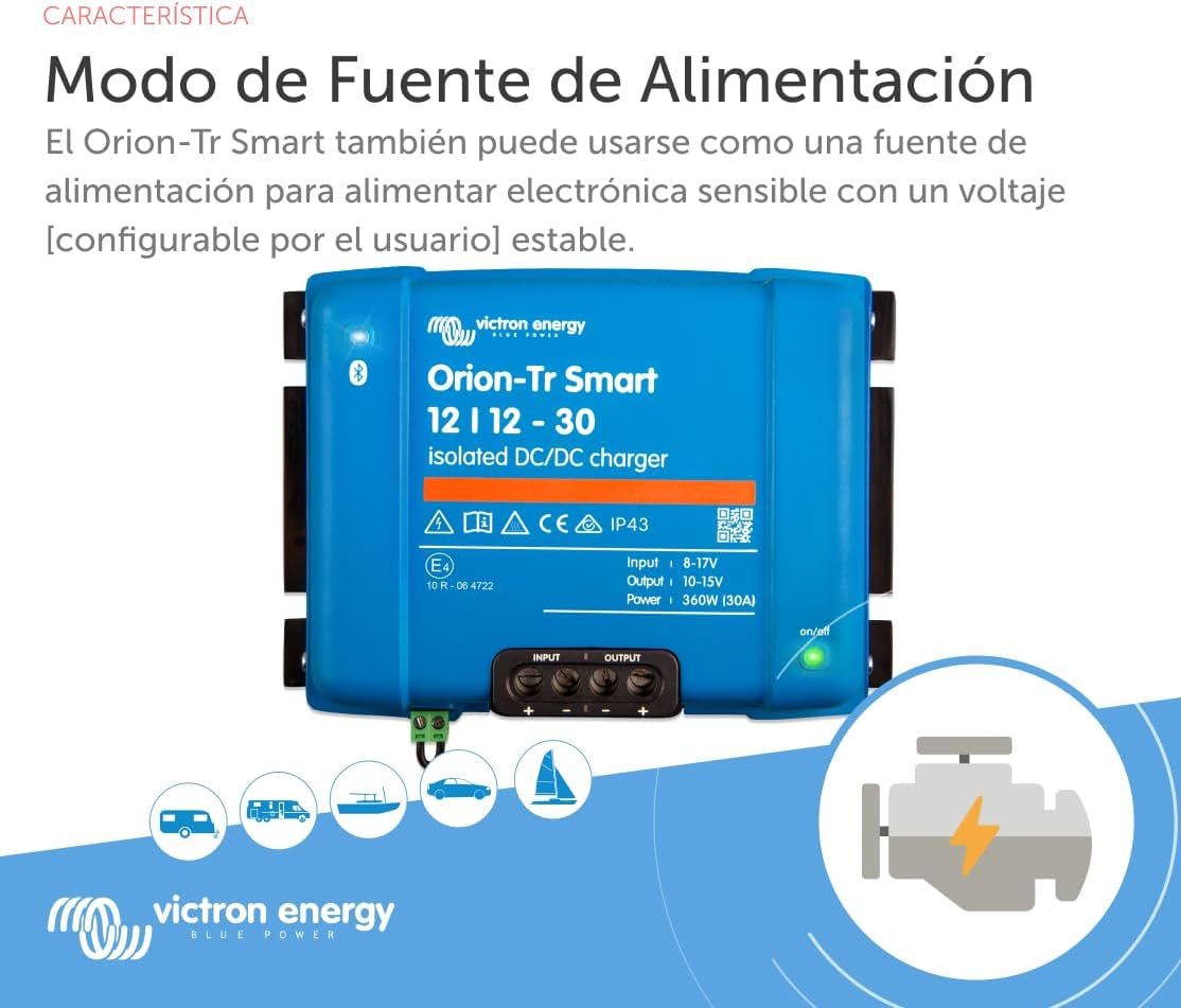 Este cargador DC-DC aislado de 360W está diseñado para proporcionar una carga óptima de baterías auxiliares, ofreciendo un rendimiento excepcional y protección avanzada para tu sistema energético.