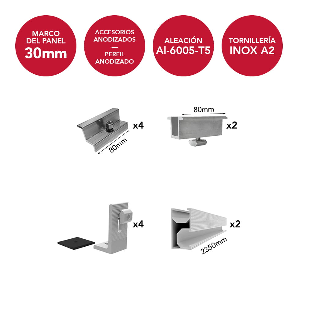 Esta estructura anodizada de alta calidad garantiza una fijación segura y duradera, optimizando el rendimiento de tus paneles solares mientras mantiene la estética de tu tejado.