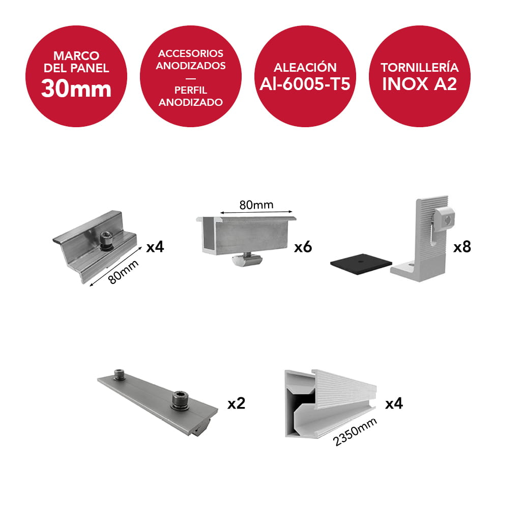 Fabricada con materiales de primera calidad y acabado anodizado, esta estructura garantiza una protección superior contra la corrosión y condiciones climáticas adversas, asegurando el rendimiento óptimo de tu sistema solar durante décadas.