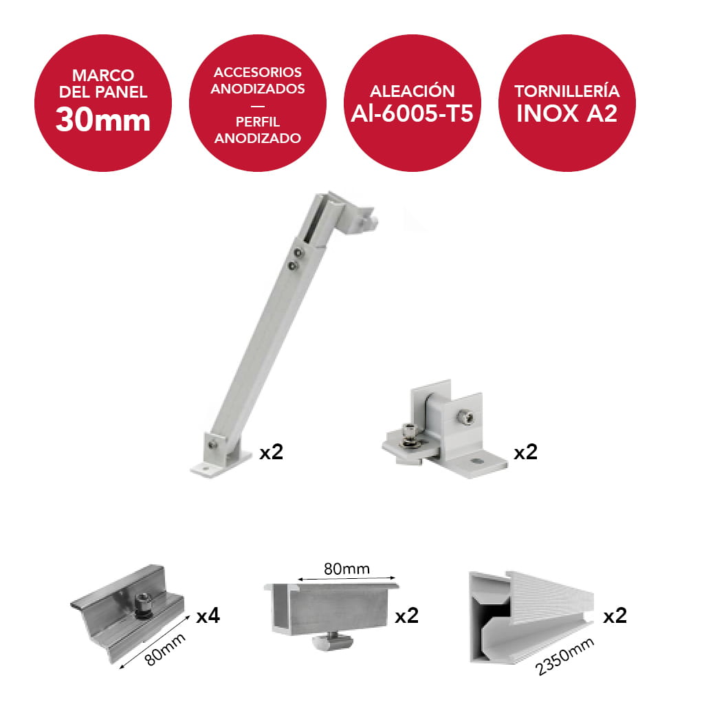 Su construcción anodizada garantiza máxima durabilidad frente a condiciones meteorológicas adversas, mientras que su sistema de regulación permite optimizar la producción energética ajustando la inclinación según las necesidades específicas de cada instalación.