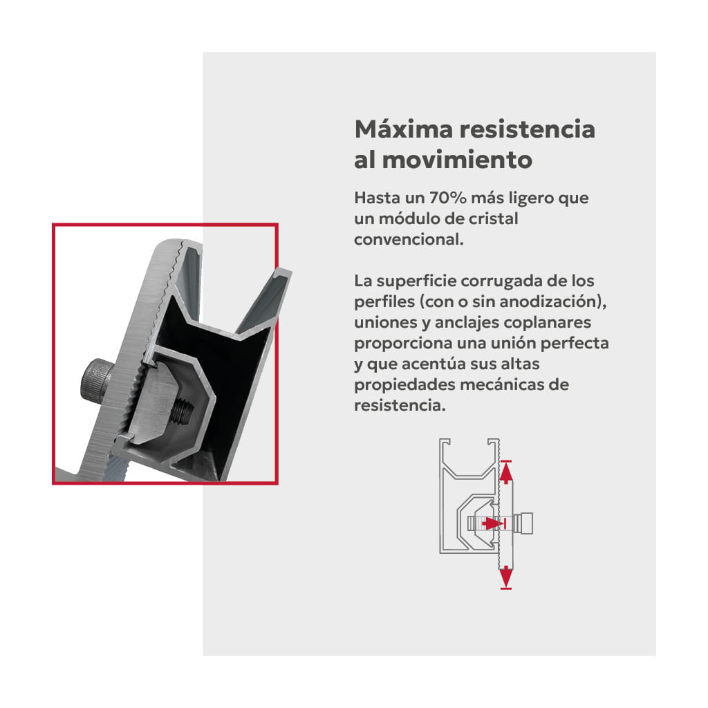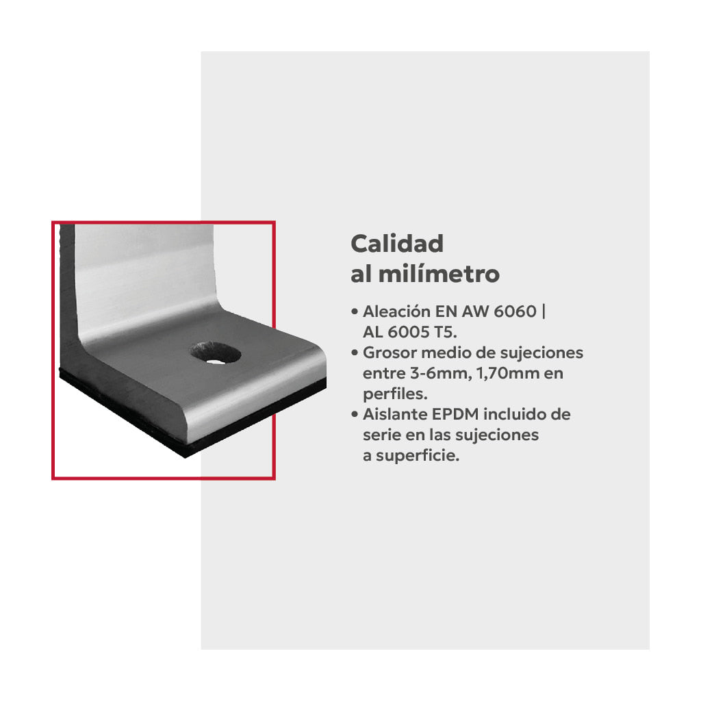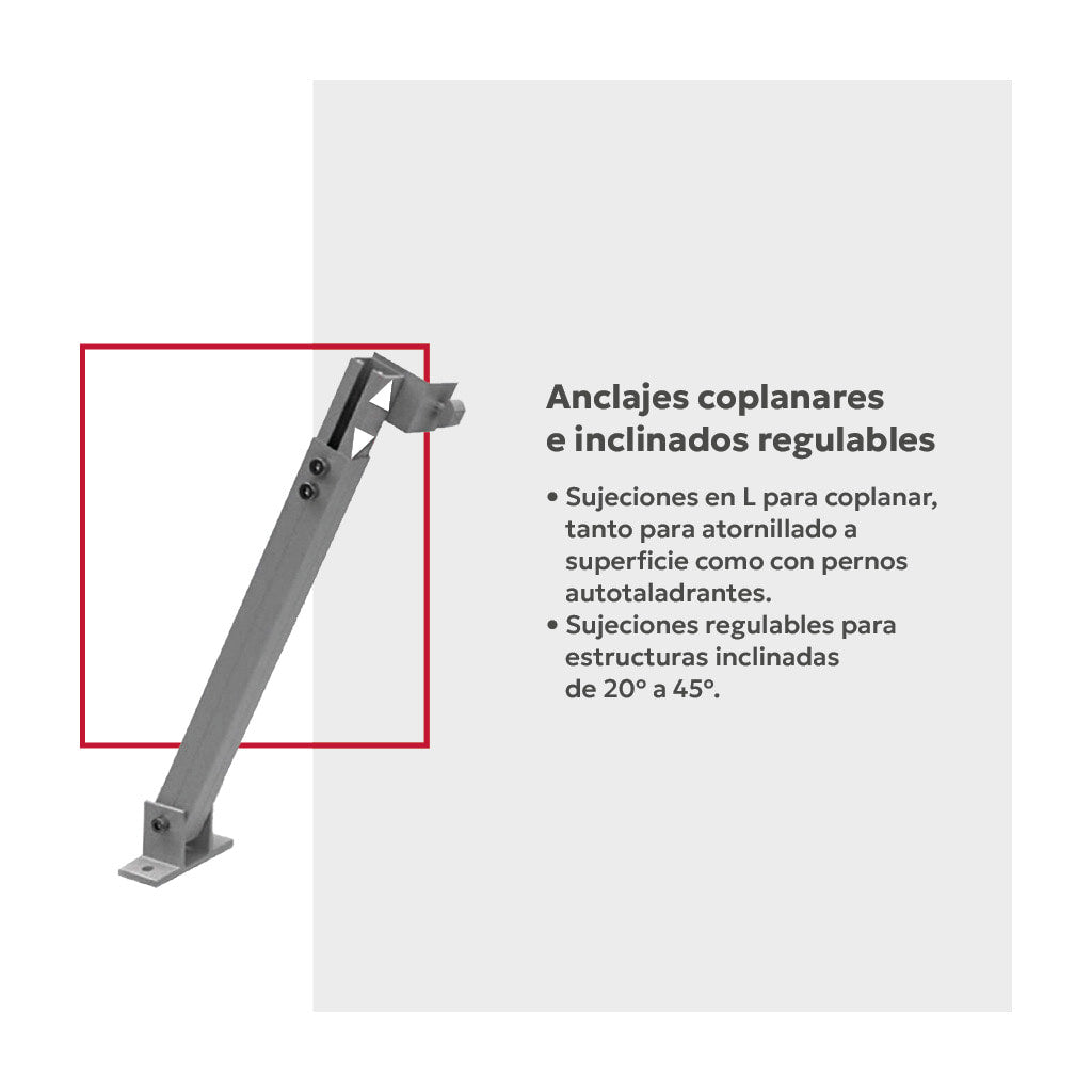 Esta estructura regulable anodizada ofrece la versatilidad que necesitas para adaptar tu instalación a las condiciones específicas de cada proyecto, garantizando el máximo aprovechamiento de la energía solar durante todo el año.