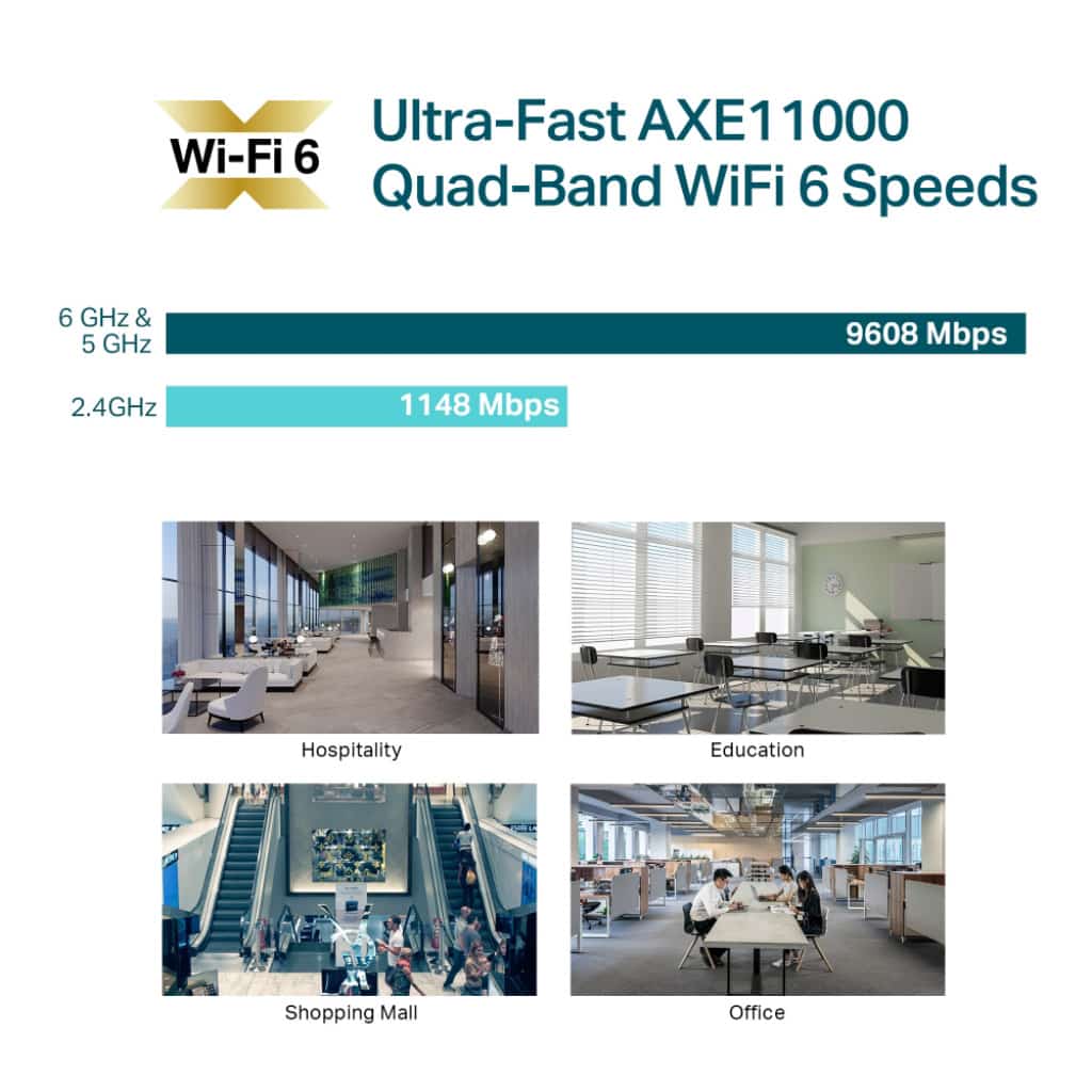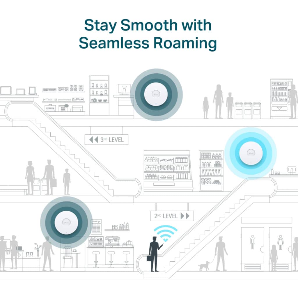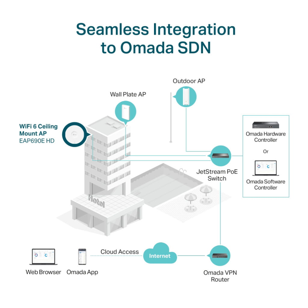 EAP690E HD Punto de Acceso Wi-Fi 6E AXE11000 Cuatribanda para Montaje en Techo Velocidades Ultrarrápidas de Wi-Fi 6E. Conectividad de Alta Densidad, hasta 2000 Clientes. Canal de Ancho de Banda de 160 MHz. Antenas Inteligentes. Compatibilidad con PoE++. Integrado en Omada SDN. Gestión Centralizada.